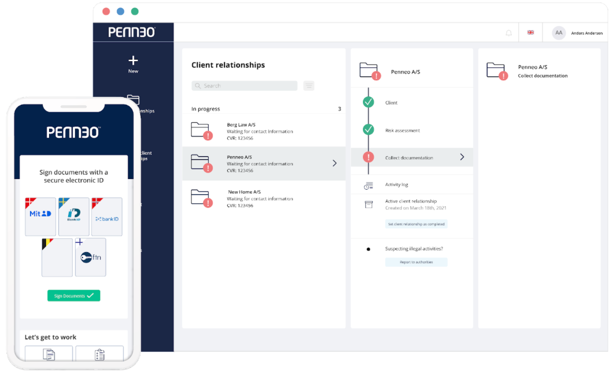 Penneo provides automation solutions for workflows related to client onboarding (KYC), digital signing, and document management. Our solutions help companies meet regulatory compliance requirements in an efficient and convenient way.